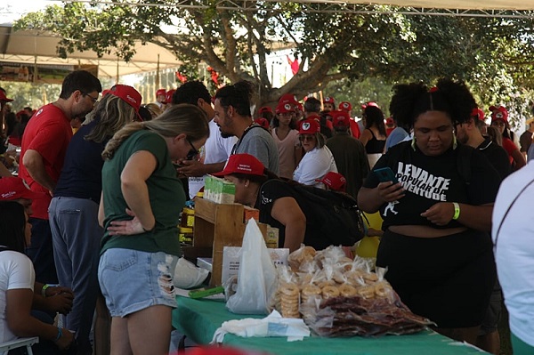 . Um dos momentos mais esperados do evento, o ato político contou com a presença de ministros do governo Lula e dezenas de lideranças políticas e parlamentares de variados partidos da esquerda, bem como representantes de entidades parceiras do movimento. O ministro do Desenvolvimento Agrário e Agricultura Familiar (MDA), Paulo Teixeira, disse trazer “o abraço e o apreço que o presidente Lula tem pelo MST”.