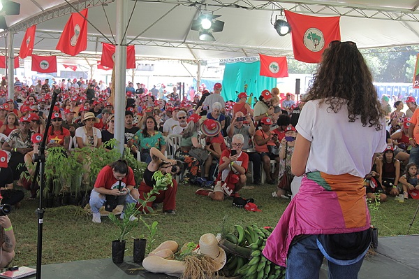 Bela Gil falou de sua paixão pelo MST e seu trabalho na democratização da alimentação, principalmente a alimentação saudável. “Não temos como pensar em democratizar a alimentação saudável, sem veneno, agroecológica, sem pensar na reforma agrária, sem pensar na distribuição da terra”, afirmou, lembrando que o Brasil é um dos países com maior concentração de terra. “Tenho muita esperança que nesse governo a gente consiga resolver isso”, almejou. .