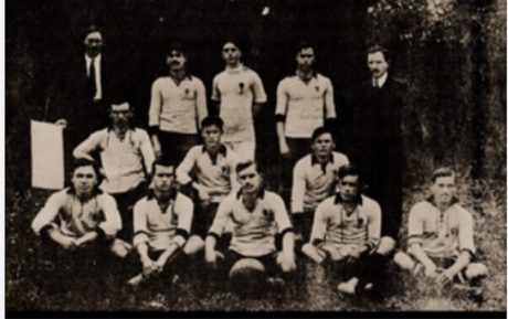 Elenco do Corinthians Paulista trajando o primeiro uniforme do clube. (acervo Timão)