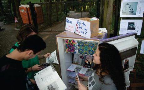 Kariny Wermouth mediando a circulação de livros na praça do Bosque Guarani, em 2016. (Acervo: Guatá)