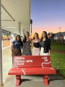 Com os dizeres “Denuncia a Violência contra a mulher – Ligue 180”, o banco da Unioeste está em um dos corredores mais frequentados do campus, perto do Restaurante Universitário e de frente para o Diretório Central dos Estudantes. A proposta é que o banco seja mais do que um espaço de pausa: uma instalação urbana que chama atenção para a causa. O vermelho lembra o sangue das vítimas de feminicídio e, ao mesmo tempo, um alerta da urgência, um “pare” coletivo diante da escalada da violência.