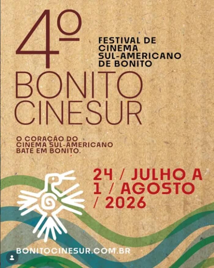 Estão abertas as inscrições para a quarta edição do Bonito Cinesur – Festival de Cinema Sul-Americano de Bonito. Longas e curtas-metragens inéditos podem participar gratuitamente até o dia 6 de abril de 2026. O festival será realizado de 24 de julho a 1º de agosto, em Bonito (MS).
