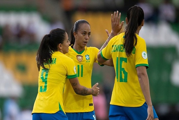 Quem vencer vai encarar a anfitriã Colômbia na final. As donas da casa derrotaram a Argentina na noite de segunda (25) por 1 a 0. Invicta na competição, a seleção brasileira fechou a primeira fase do torneio na liderança do Grupo B: venceu todas as quatro partidas (Argentina, Uruguai, Venezuela e Peru), com 17 gols marcados e nenhum sofrido.