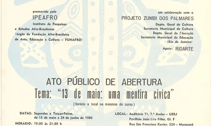 Como parte do Acordo de Cooperação Técnica, as entidades vão realizar um evento de abertura para o público no dia 17 de novembro, às 13h30, no Mast, em São Cristóvão, no Rio de Janeiro. O público poderá conferir parte dos cartazes do Ipeafro ao visitar a exposição “Memória Negra em Cartaz(es)”, sobre a organização dos movimentos negros do Brasil, e participar da mesa “Evocação dos Ausentes”, na qual pesquisadores do projeto debatem o silenciamento de pessoas negras na ciência.
