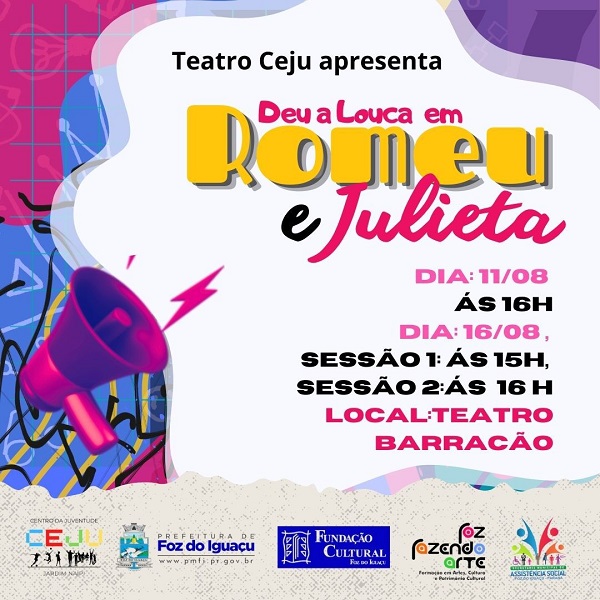 Dia 31 – Apresentação de Teatro “Deu a louco em Romeu e Julieta” Horário: 9h / Local: Fundação Cultural de Foz – aberta ao público em geral