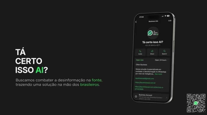 Atentos ao impacto que a desinformação pode exercer sobre os rumos do Brasil, especialmente com o horizonte das eleições de 2026, três alunos do Instituto de Ciências Matemáticas e de Computação (ICMC) da USP, em São Carlos, desenvolveram um sistema de verificação de fatos que funciona no aplicativo para celulares WhatsApp. Intitulado Tá certo isso AI?, o chatbot utiliza inteligência artificial (IA) multimodal, ou seja, capaz de analisar e combinar diferentes tipos de informação – como áudio, vídeo, texto ou imagem –, para verificar mensagens por meio de fontes confiáveis.