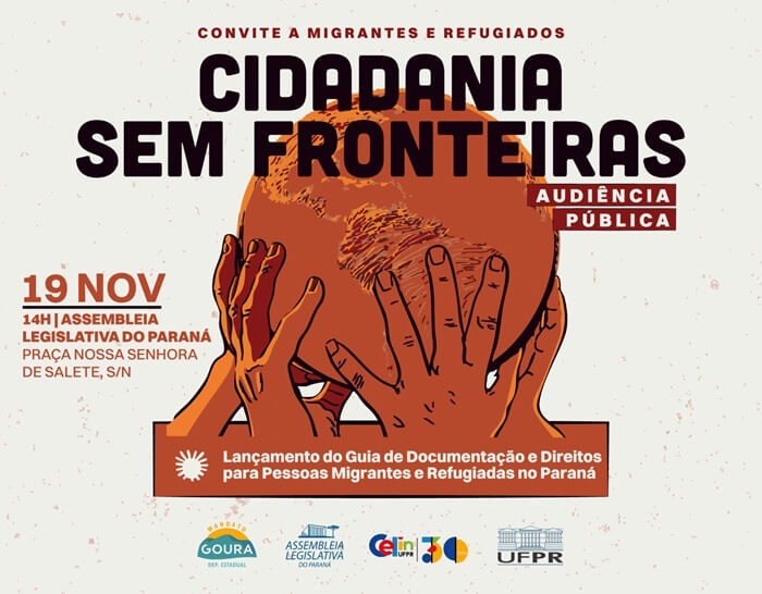 “Cidadania Sem Fronteiras” é o nome da audiência pública que a Assembleia Legislativa do Paraná (Alep) realiza a nesta quarta-feira (19), às 14 horas,. Iniciativa do deputado estadual Goura (PDT), o evento visa promover um espaço de escuta, diálogo e construção coletiva de soluções das demandas de pessoas migrantes e refugiadas que vivem no Paraná.
