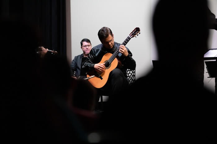 O concerto começa com obras de Bach, referência máxima do barroco, passa pelo classicismo elegante de Boccherini e avança até o século XX, com obras que revisitam tradições sob novas perspectivas, como a Capriol Suite, de Warlock, e as Romanian Folk Dances, de Bartók, inspiradas na música folclórica.