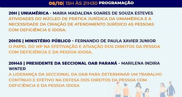 Com o objetivo de discutir maneiras de melhorar a inclusão das pessoas com deficiência e idosos e estabelecer um espaço de troca entre as entidades que atuam no setor, a subseção de Foz do Iguaçu da Ordem dos Advogados do Brasil (OAB) vai promover um encontro temático no dia 6 de outubro.