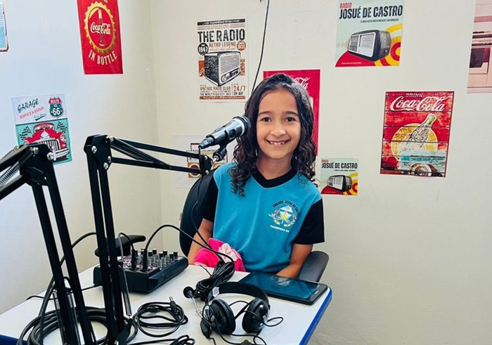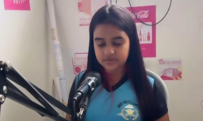 Aluna de unidade de ensino de Theobroma (RO) participa do programa Rádio na Escola – Foto Elias Bastos/Arquivo Pessoal