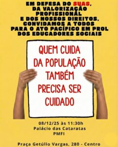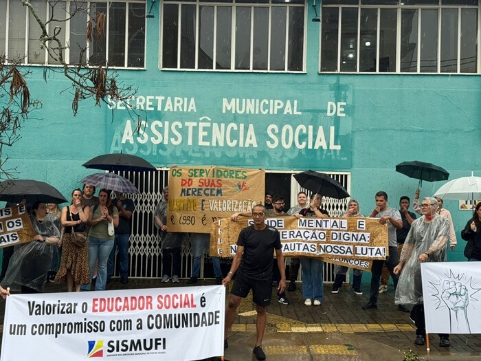 Apesar da chuva, a manifestação dos educadores ocorreu no centro de Foz do Iguaçu – Fotos: divulgação