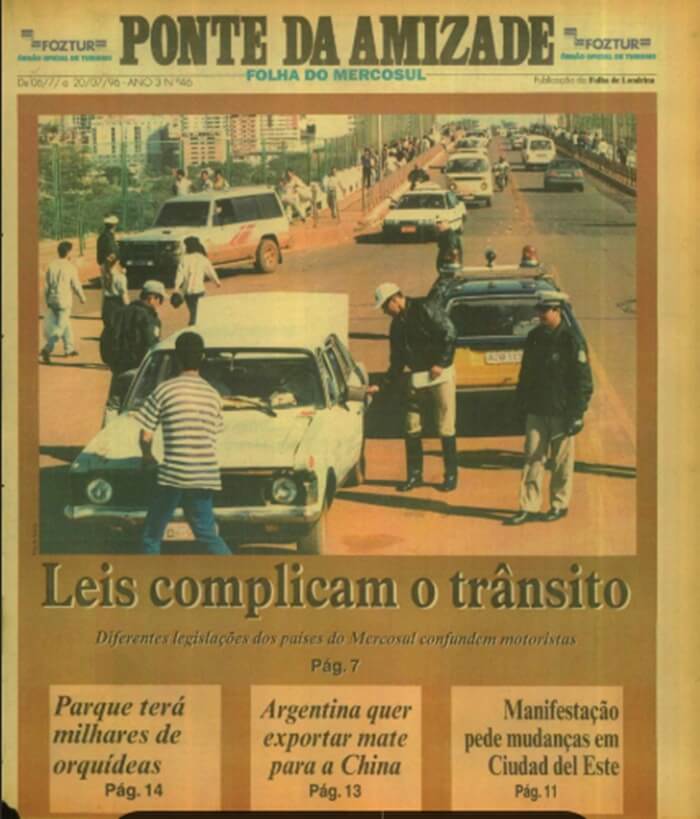 A década de 1990 foi intensa e marcada por transformações na dinâmica das Três Fronteiras do Brasil, Paraguai e Argentina. O jornal Ponte da Amizade, do Grupo Folha de Londrina, retratou esse período em edições de 1994 a 1999. O Museu da Imprensa reúne quase 2 mil páginas digitalizadas para revisitar esse período e lançar novos olhares sobre a região trinacional – a de ontem e a de hoje.