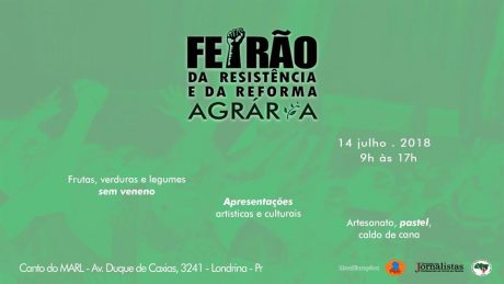 O Feirão da Resistência e da Reforma Agrária realiza suas atividades em 2018 em grande estilo no sábado dia 14 de julho das 9h às 17h. O evento será realizado no Canto do MARL (localizado na Av. Duque de Caxias, n.3241 | Londrina).