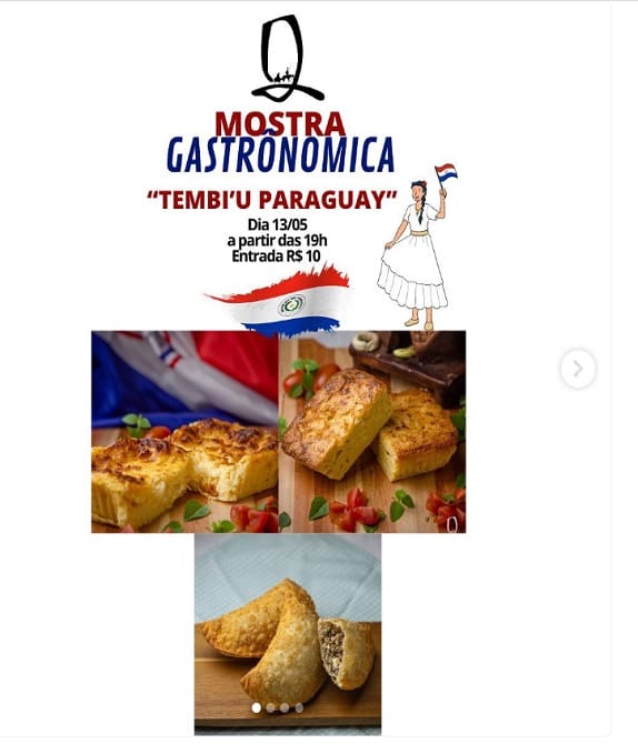 Além de boa música, o “El Bravo Paraguay” apresenta um Mostra Gastronômica. Pratos típicos como sopa paraguaia, empanada e chipa guazu, mais conhecidos pelo público iguaçuense, dividirão a mesa com outras delícias da culinária paraguaia. Que tal começar experimentando a sopa so’o (torta semelhante a sopa paraguaia, mas com recheio de carne e ovo)? Ou enfrentar o friozinho de outono com o tradicional vori vori de pollo (sopa com bolinhas de amido recheadas de queijo, num caldo de peito de frango e ervas aromáticas)? Aliás, o vori vori foi recentemente eleito como uma das 10 melhores sopas do mundo.