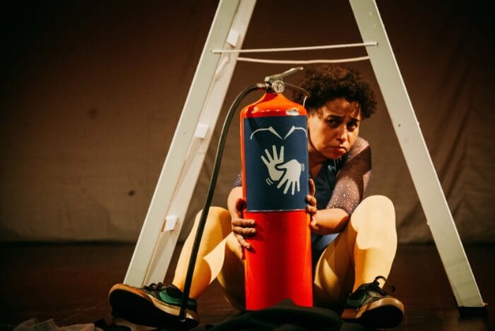 A artista curitibana Negabi, durante o festival apresenta a Cena Visualínguas. – Foto: Festival Novos Olhares / divulgação