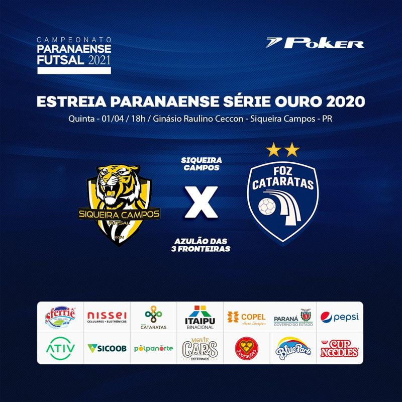 O Foz Cataratas Poker Futsal faz o seu primeiro jogo do ano nesta quinta-feira, 1º de abril, às 18 horas, contra o Siqueira Campos, no Ginásio Raulino Ceccon, na cidade de Siqueira Campos (PR). A partida é válida pelo Campeonato Paranaense Série Ouro. O jogo será realizado com os portões fechados para a torcida, em conformidade com os protocolos sanitários do estado do Paraná.
