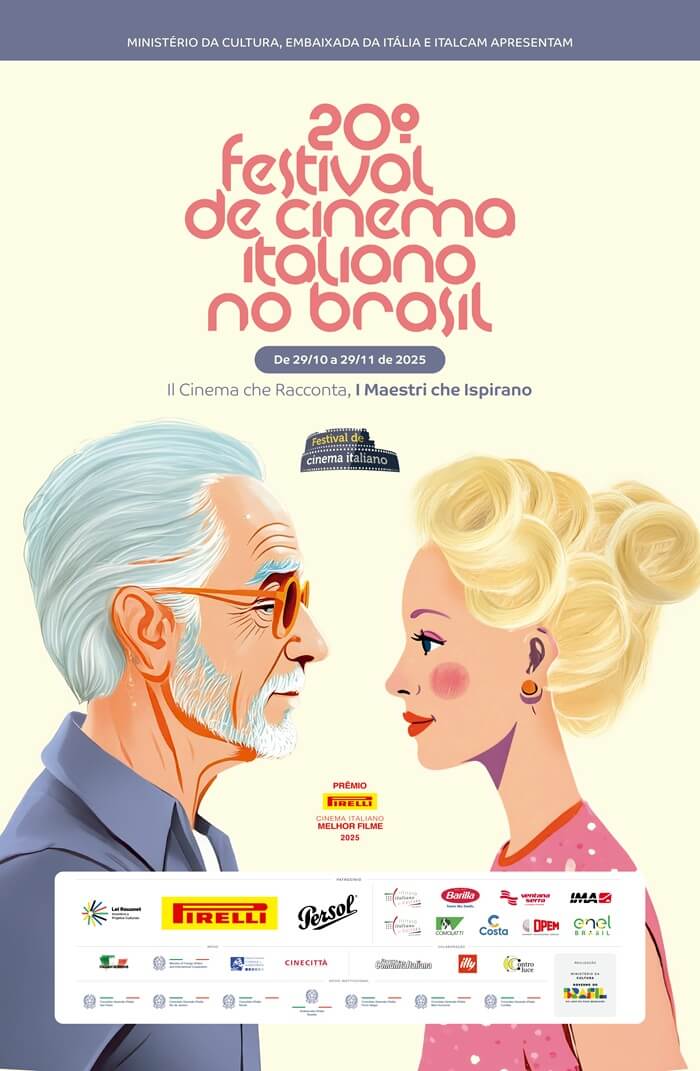 A 20ª edição do Festival de Cinema Italiano no Brasil celebra duas décadas de difusão da cinematografia italiana em nosso país. O evento, que já faz parte do calendário cultural nacional, movimentará mais de 100 salas em todo o país. O Festival é um projeto organizado pela Câmara de Comércio Italiana de São Paulo – ITALCAM, em colaboração com a Embaixada da Itália. A Pirelli é a patrocinadora master do evento, pelo quarto ano consecutivo. O evento recebe o apoio do Ministério da Cultura do Governo Federal brasileiro.