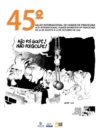 No cartaz da edição 45 do Salão, a charge original de Laerte, premiada em 1974 e a releitura feita em 2018