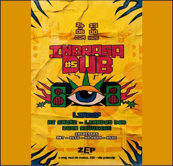 Último recado dos organizadores do InBrasaDub: “mão moska, segue a batida!”. O evento no Zeppelin Old Bar será o 5.º InBrasaDub.