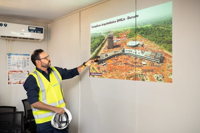 . Para a estagiária da Itaipu e estudante da Unila Yanki Karen Barreiros da Silva, visitar o canteiro de obras do Campus Arandu é uma experiência especial. Ao testemunhar o andamento da construção, ela definiu o sentimento que compartilha com a comunidade acadêmica. “É um sonho. Um sonho coletivo de alunos e professores, porque vai ampliar as oportunidades acadêmicas e garantir melhores espaços de aprendizagem e convivência”, resumiu.