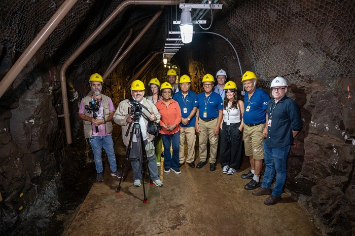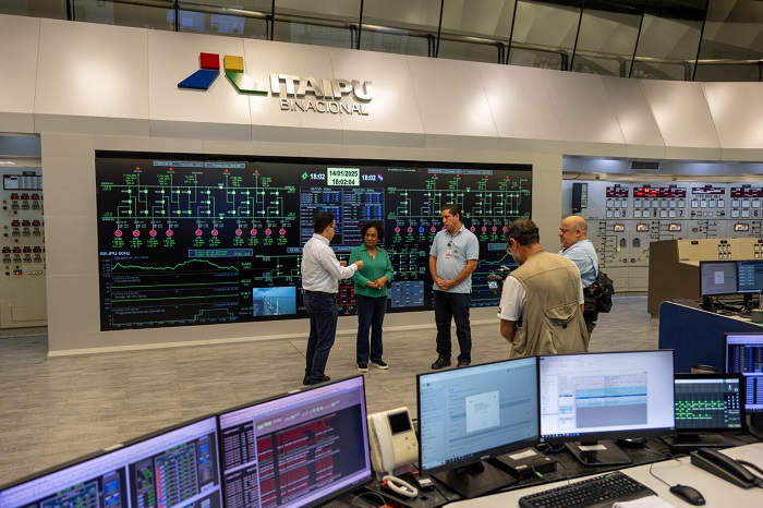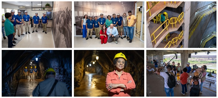 Dulcinéia conversou com operadores brasileiros e paraguaios na Sala de Supervisão e Controle Central (CCR), passou por pontos icônicos da usina, como a Galeria dos Geradores e o eixo da turbina, e desceu até a cota 40, antigo leito do Rio Paraná.