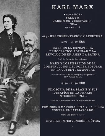 “Marx, 200 anos” – Dia 19 de junho, a partir das 16 horas, na Sala 203, Jardim Universitário, da Unila.