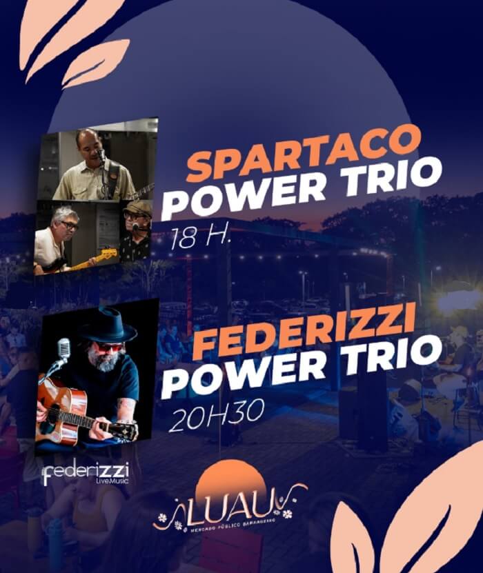 O pop rock do Federizzi Power Trio encerra a programação do Luau deste sábado no Mercado Público Barrageiro – Foto: captura de tela