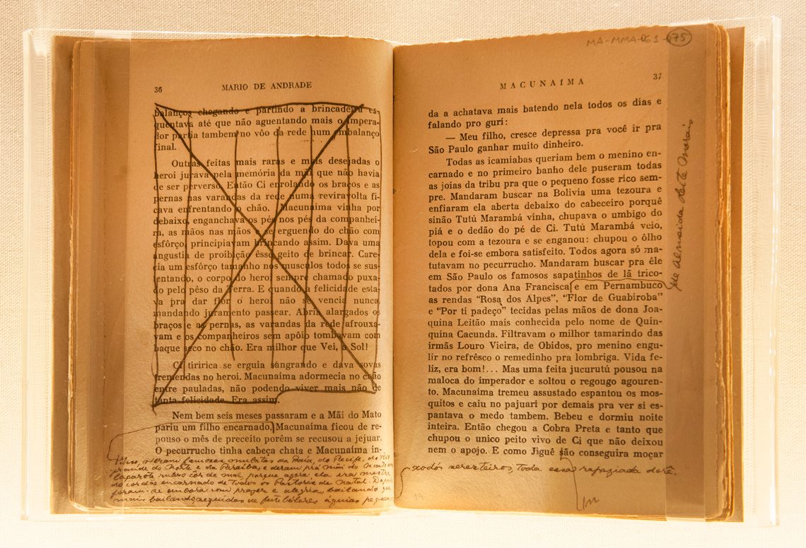 . Seleção de fotografias oferece um passeio por elementos visuais relacionados ao modernismo e à Semana de Arte Moderna de 1922, incluindo manuscritos de livros, como Macunaíma, de Mário de Andrade (1893-1945), e imagens de obras como Caipirinha, de Tarsila do Amaral (1886-1973).