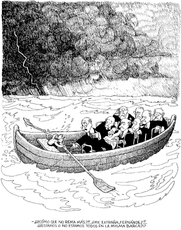 – Como não rema mais? Estranho, Fernandez. Afinal, estamos ou não estamos todos no mesmo barco?!