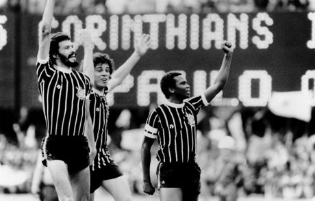 Sócrates, Casagrande e Wladimir, esteios do movimento “Democracia Corinthiana”, que no início dos anos 80 participava da resistência contra a ditadura militar.
