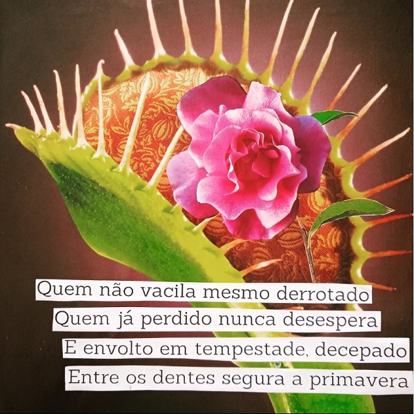 Quem não vacila mesmo derrotado Quem já perdido nunca desespera E envolto em tempestade, decepado Entre os dentes segura a primavera”
