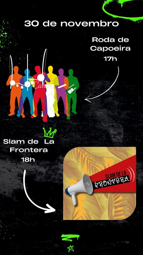 Finalmente, dia 30, fechando o mês, a Feirinha promove um grande Roda de Capoeira e também destaca batalhas de rima com o Slam de la Frontera.