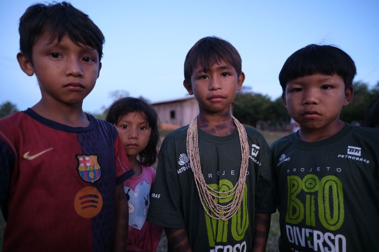 Crianças indígenas do Povo Rikbaktsa na aldeia Beira Rio, Terra Indígena Erikpatsa. Foto: Fernando Frazão/Agência Brasil