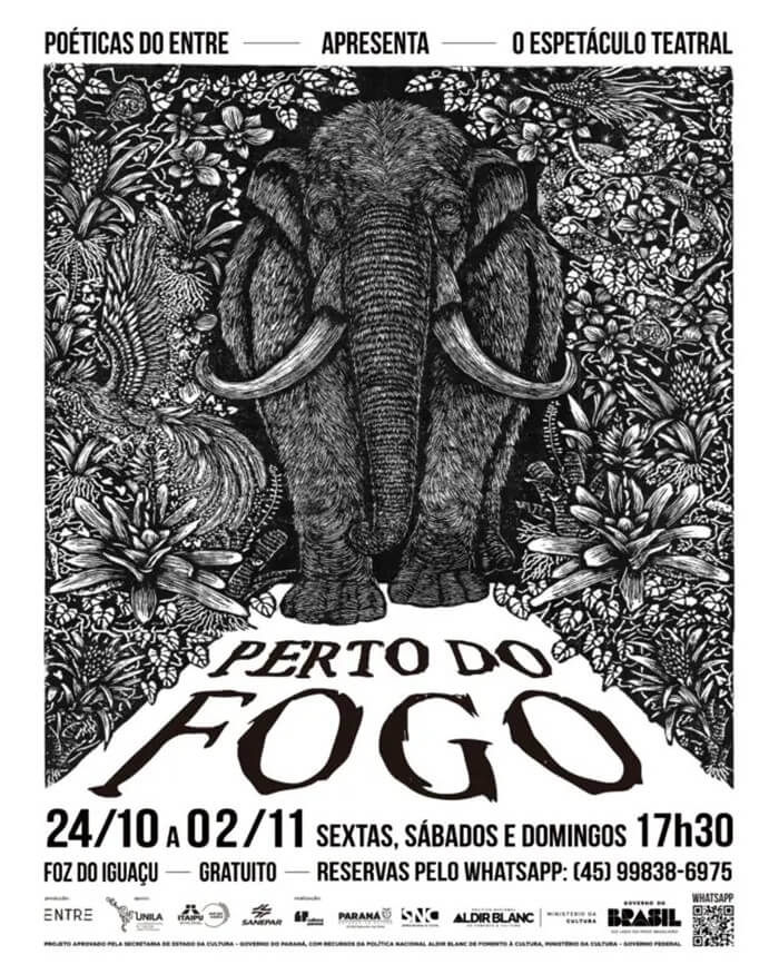 A emergência climática em curso não respeita fronteiras disciplinares, políticas ou culturais. Diante dela, o que pode a arte? Como imaginar, coletivamente, outros modos de vida? Como renunciar ao modelo extrativista de exploração do planeta? O que é preciso reacender para continuarmos vivos? Essas perguntas conduziram o processo de criação do espetáculo Perto do Fogo, do projeto de pesquisa e extensão “Poéticas do ENTRE” (UNILA), que estreia em 24 de outubro, em Foz do Iguaçu.