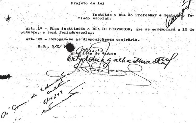 A partir de 1963 o Dia do Professor passou a ser comemorado oficialmente em 15 de outubro em todo o Brasil. Mas a data já era celebrada em Santa Catarina desde 1948 por iniciativa de Antonieta de Barros, a primeira mulher negra a ser eleita deputada no país. Professora por formação e filha de uma ex-escrava, ela teve papel fundamental na luta pela igualdade racial e pelos direitos das mulheres.