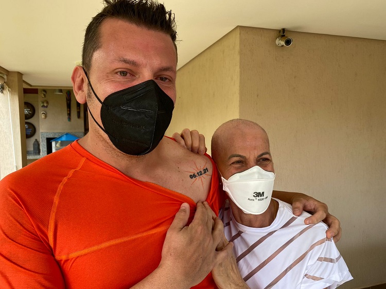 Paulo Roberto Donato, 67, e Marilis Mariotto Donato, 65: exemplos de perseverança e superação. O filho Paulo Cesar fez questão de marcar na pele a data do transplante bem sucedido da mãe. – Fotos: Arquivo da família . . Além do reencontro com a prova (que não aconteceu em 2020 e 2021 em razão da pandemia), essa edição da #MeiaDasCataratas terá um gosto ainda mais especial para o casal. Será o momento para celebrar a vida de Mary, que em abril do ano passado foi diagnosticada com mieloma múltiplo, câncer que acomete um tipo de célula da medula óssea. Com muita determinação e otimismo, ela encarou o tratamento que contou com sessões de quimioterapia e um transplante realizado com sucesso. Inclusive, essa data do “renascimento” de Mary (6/12/2021) está gravada na pele de Paulo e do filho Paulo César, que fizeram uma tatuagem em homenagem à vitória.Mesmo durante o tratamento, Mary manteve a rotina de treinamentos – corrida, musculação e pilates – com exercícios de menor intensidade. As atividades só foram mesmo interrompidas na época do transplante e retornaram, com acompanhamento médico, logo após a alta hospitalar.“Não imaginávamos participar de alguma prova de imediato, mas como tudo conspirava a favor vimos que poderíamos retornar justamente naquela que é mais que especial para nós. A planilha de treinos está sendo seguida a rigor e com muita alegria! A 13ª edição da Meia das Cataratas nos aguarda”, comemora Paulo.
