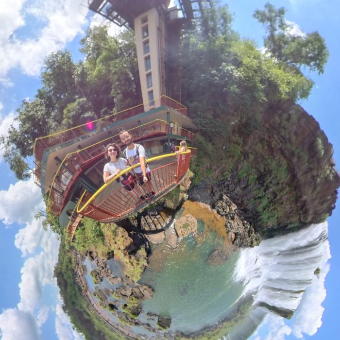 Plínio e Sofia amaram a experiência. “É uma coisa de outro mundo, né? Aquela imensidão, as quedas de água enormes… Não é uma coisa que você vê todo dia. É muito bonito. Desde a subida no ônibus até chegar às quedas é uma experiência de conexão com a natureza muito legal. E tivemos a sorte de ver alguns arco-íris sendo formados.”