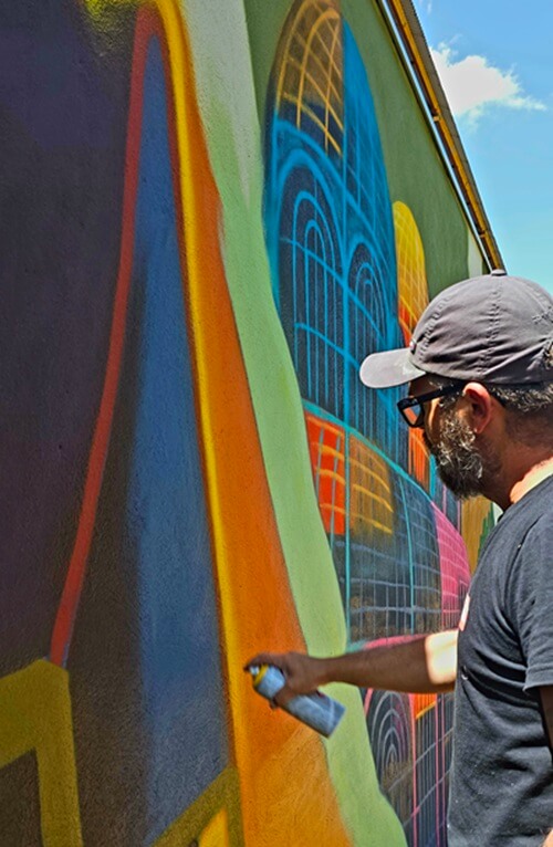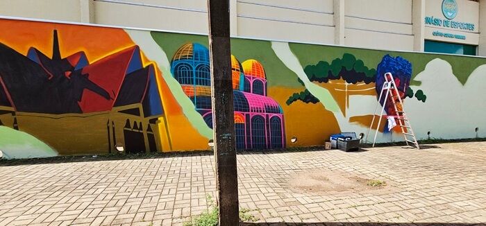 Parcial do mural desenvolvido por Roger Silva na Guarda Mirim de Foz do Iguaçu – Fotos: divulgação / R.Silva