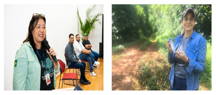 À esq., Veridiana Pereira, da Itaipu (Foto: Rubens Fraulini) / À dir., Marinês Foletto, professora da Escola Municipal Pedro Álvares Cabral (Foto: Itaipu).
