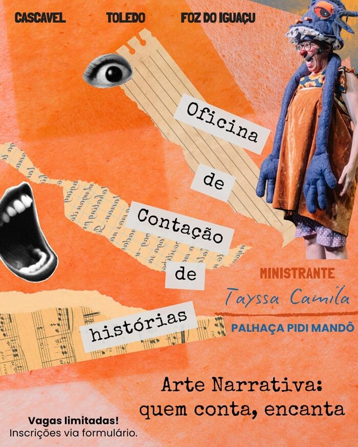 No mês de setembro Toledo recebe a oficina de contação de histórias, ministrada pela atriz e arte educadora Tayssa Camila, palhaça Pidi Mando. A oficina tem como objetivo despertar um olhar sensível para formas criativas de narrar histórias, além de incentivar o uso de materiais reciclados para criação de elementos cênicos e sonoros e integra o projeto de extensão “Circuito de formação artística/cultural” promovido pelo CECA (Centro de Educação, Comunicação e Artes) da Unioeste de Cascavel.
