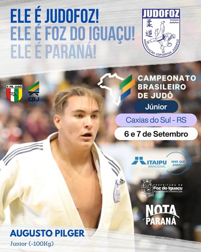 Nos dias 6 e 7, ocorre em Caxias do Sul, RS, o Campeonato Brasileiro Júnior de Judô. A competição reunirá cerca de 340 atletas de até 21 anos, representando 26 estados brasileiros. Entre os atletas paranaenses, destaque para o judoca iguaçuense Augusto Pilger, que representará o estado na categoria -100kg.
