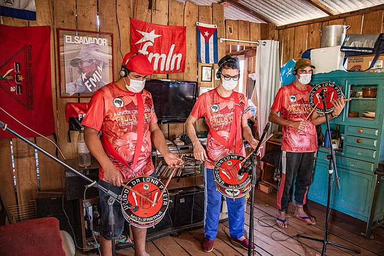 Juliana Barbosa conheceu o tamborim aos 19 anos, em um dos cursos de música do MST realizados durante a Vigília Lula Livre, em Curitiba, em 2018. Na época, a jovem morava com a família no acampamento Dom Tomás Balduíno, em Quedas do Iguaçu. Ela veio à capital integrando uma das brigadas de apoio à Vigília, formadas por militantes do Movimento de todas as regiões do estado, ao longo dos 580 dias de manifestação diária pela liberdade de Lula.