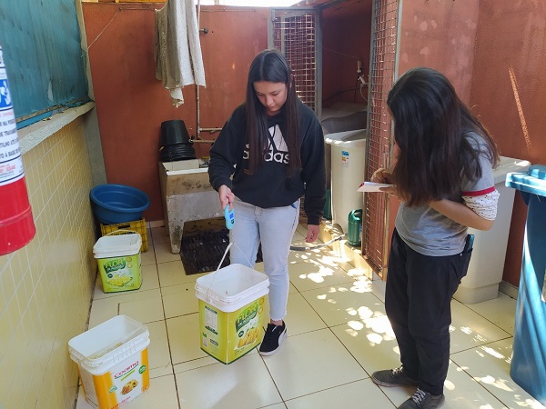 Ao lado de Aline, os colegas Carlos Eduardo Cavalheiro Nunes, Felipe Antunes, Victor e Vinícius Heidercheidt, Jonatas Gabriel Martinez e Gabriele Simpsen, todos do primeiro ano do Ensino Médio, são os responsáveis pela coleta, pesagem e controle dos alimentos que serão transformados e pelos cuidados com a horta. Todos concordam que participar do projeto é inspirador. “Estamos fazendo um movimento para a escola inteira”, diz Felipe. Além de aprender conteúdos de Química, eles entendem que também colaboram para um planeta ambientalmente melhor. “É uma sensação única, gratificante”, afirma Jonatas.