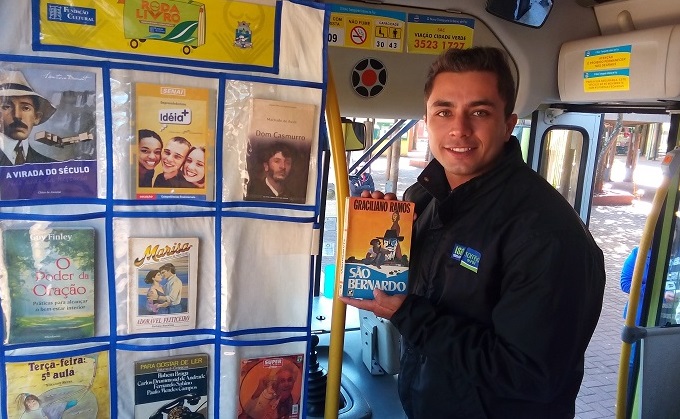 – Iguaçuenses têm livros gratuitos nos ônibus do transporte urbano – Assim como o “Epidemia de Poesia”, o projeto Roda Livros é mais uma iniciativa da Fundação Cultural que permite ao usuário do transporte coletivo urbano de Foz do Iguaçu tomar um livro emprestado, levar para casa e devolver quando terminar de ler. Tudo isso sem nenhuma burocracia. Os livros ficam expostos em ‘spencers’ dentro dos ônibus. Pegue o gênero que mais interessa e comece a viagem. O bacana, mesmo, é não esquecer de devolver e também contribuir com o projeto, doando ou substituindo com algum livro que tenha em casa. Isso não é regra. Trata-se apenas de sugestão. A Fundação Cultural disponibiliza nove mil exemplares, em caráter experimental, nos 50 dos 150 ônibus que estão circulando com apoio do Consórcio Sorriso, que tem a concessão do serviço na cidade.