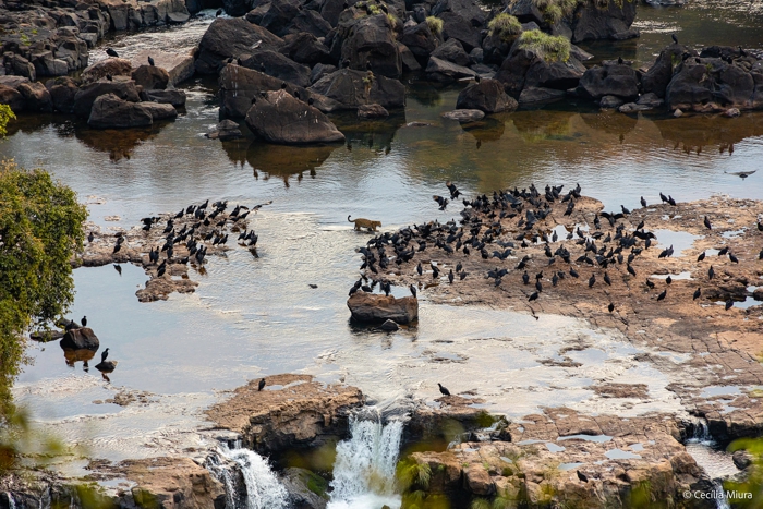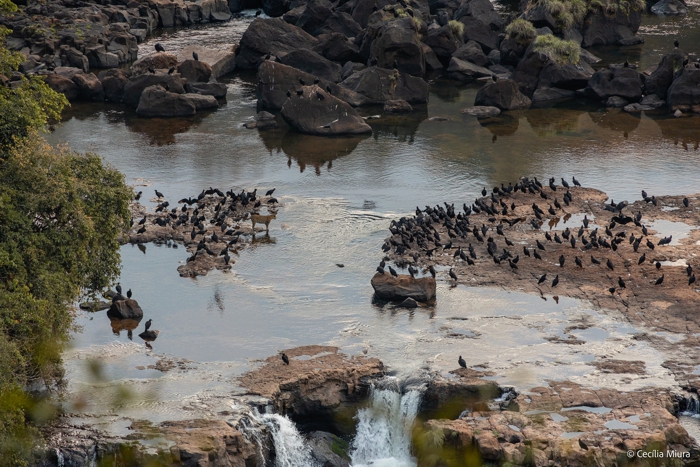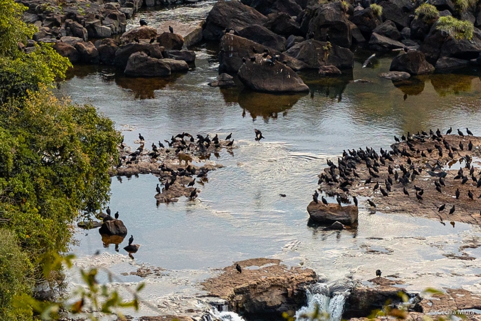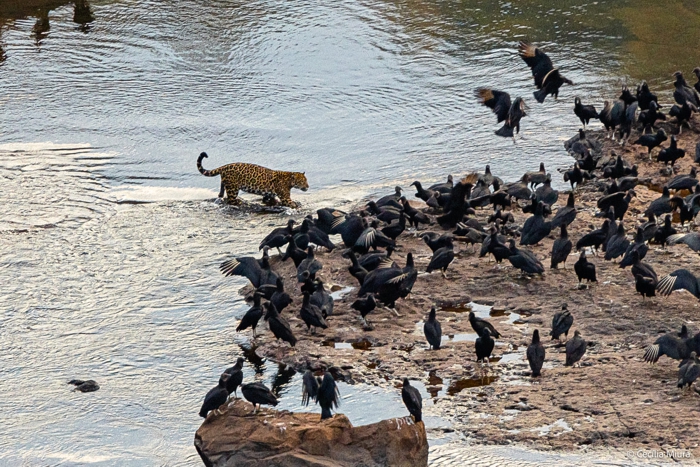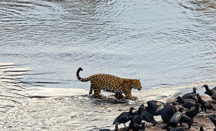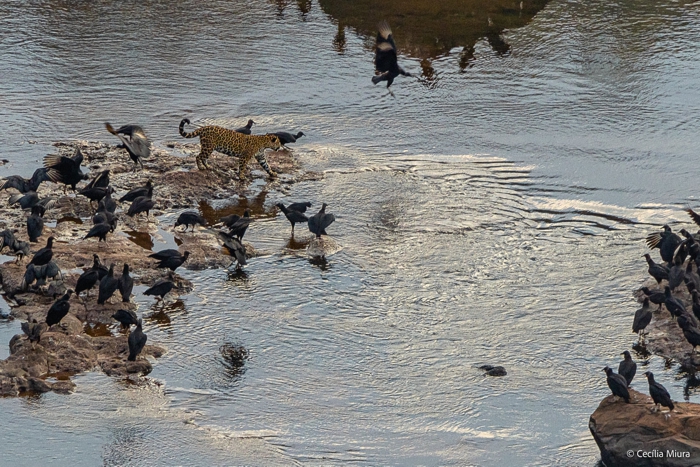 No lado argentino, uma onça-pintada caminhava calmamente na parte superior das cataratas, em meio aos urubus. Quase tivemos um chilique quando vimos as fotos.